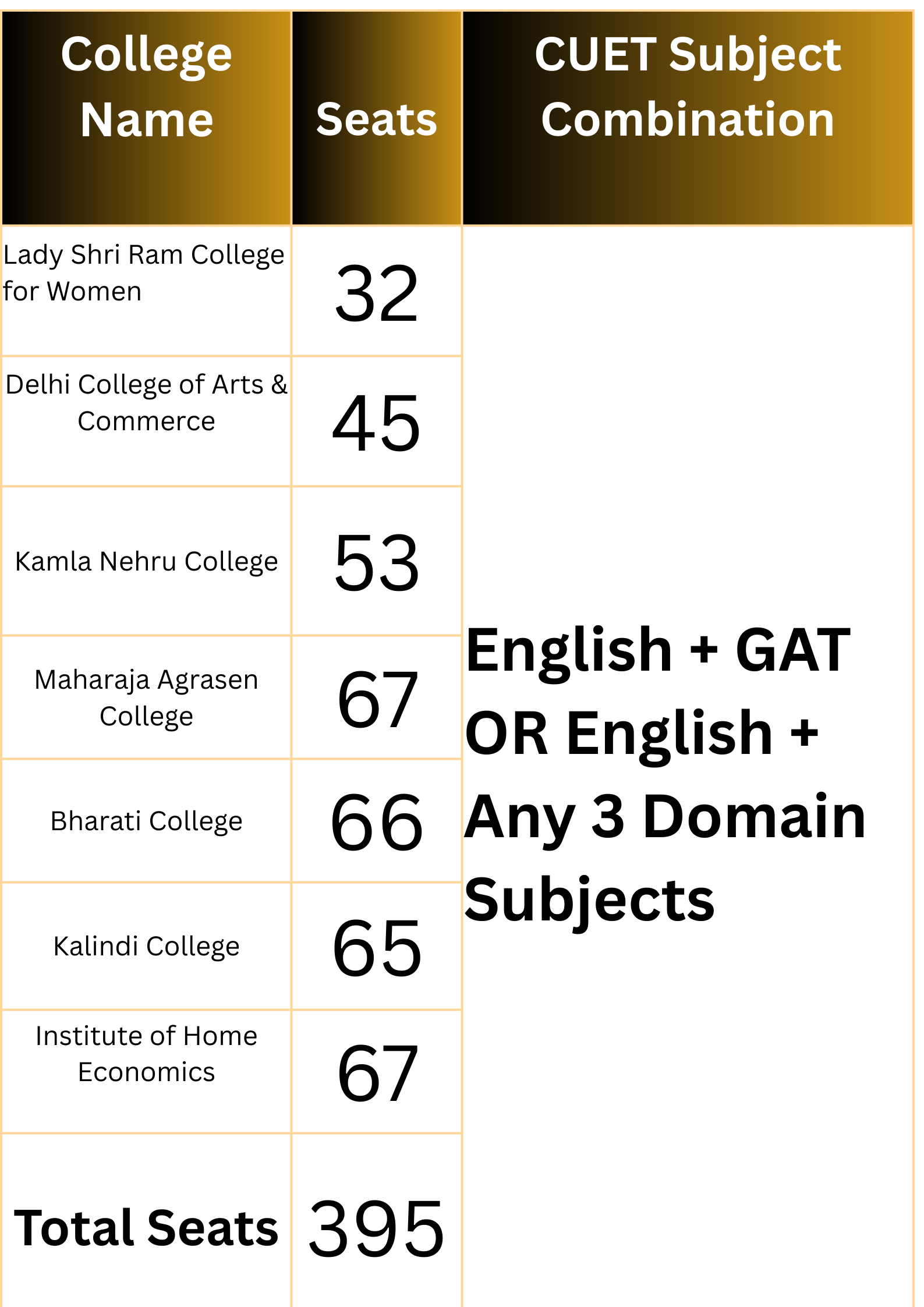 Admission merit list is created based on the best CUET score among valid combinations.
